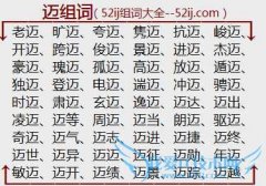 组词大全详解[迈组词]如:老迈、旷迈、夸迈、隽迈、抗迈、峻迈、开迈、跨迈、俊迈、景迈、进迈、杰迈、豪迈、瑰迈、孤迈、高迈、放迈、遁迈、独迈、登迈、电迈、遄迈...
