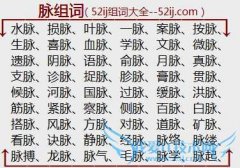 组词大全详解[脉组词]如:水脉、损脉、叶脉、一脉、案脉、按脉、生脉、喜脉、血脉、学脉、文脉、微脉、遗脉、阴脉、语脉、俞脉、月脉、真脉、支脉、诊脉、捉脉、胗脉...
