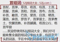 组词大全详解[苴组词]如:苴杖、苴茅、草苴、苞苴、包苴、土苴、苴服、苴麻、苴秸、苴衰、苴布、含苴、补苴、敝苴、巴苴、望苴、且苴、栖苴、蒲苴、麻苴、罗苴子、苴...