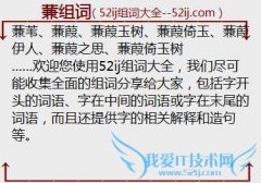 组词大全详解[蒹组词]如:蒹苇、蒹葭、蒹葭玉树、蒹葭倚玉、蒹葭伊人、蒹葭之思、蒹葭倚玉树 另外还讲解蒹的组词、拼音、繁体字、解释相关资料及发散思维组词等。...