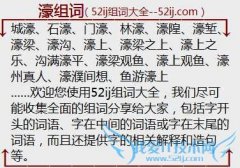组词大全详解[濠组词]如:城濠、石濠、门濠、林濠、濠隍、濠堑、濠梁、濠沟、濠上、濠梁之上、濠上之乐、沟满濠平、濠梁观鱼、濠上观鱼、濠州真人、濠濮间想、鱼游濠...