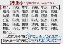 组词大全详解[狷组词]如:狷介、狷隘、狷狷、狷暴、狷厉、狷急、狷行、狷洁、狷戾、骄狷、刚狷、高狷、褊狷、愚狷、躁狷、隘狷、轻狷、灵狷、狂狷、狷愤、狷狂、狷浅...