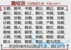 组词大全详解[鞫组词]如:乞鞫、鞫考、考鞫、鞫治、鞫囚、鞫案、鞫引、鞫劾、鞫正、鞫问、审鞫、询鞫、谳鞫、拶鞫、读鞫、逮鞫、案鞫、按鞫、廷鞫、推鞫、研鞫、讯鞫...