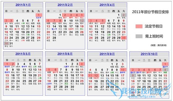 2011年部分节假日安排公告表
