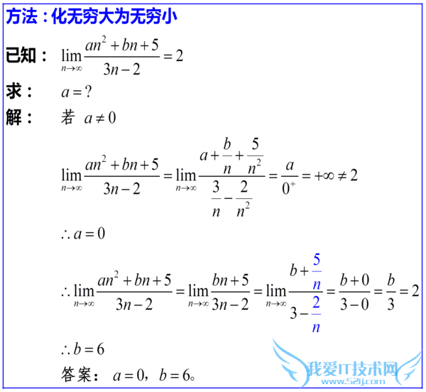 解答方法是先讨论分子分母哪个是高阶无穷大,确定a=0;