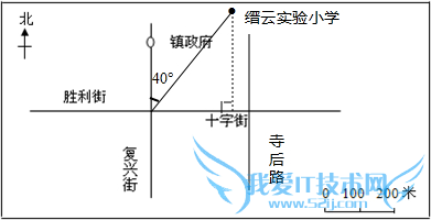 (1)镇政府位于十字街北边,量出镇政府到十字街的图上距离约为2厘米,