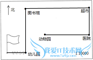 问题2:星星小学的正东方向100m是幼儿园,幼儿园的正北方向300m是图书馆,图书馆的正东方向400m 是超市,超市的正南方向200m是医院,医院的正西方向300m是动物园.先确定比例尺,再画出上述地点[数学科目]