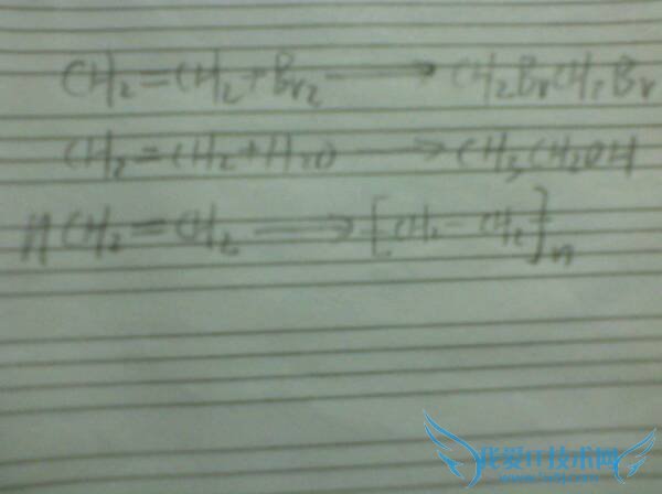 问题2:化学方程式:乙烯与溴的反应、乙烯与水的反应、乙烯生成聚乙烯的反应[化学科目]