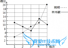 (1)姚明平均分:15(4+6+9+11+20)=10(分),林书豪平均分:15(11+9+7+13+10)=10(分);(2)从五场比赛得分上看林书豪的成绩更稳定,理由:姚明得分的方差为...