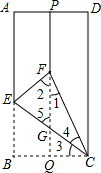 类别:52ij作业 发布时间:16-05-08 点击:1691∵△EFC由△EBC折叠而成,∴△EFC≌△EBC,∴∠3=∠4,∠B=∠EFC=90°,BC=CF=3,∵Q是BC的中点,∴CQ=12BC,∴∠1=30°,∠2=60°,∴∠FCQ=60°,∴∠3=∠4=30°,...