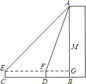 设AG=x,由题意得,∠AEG=45°,tan∠AFG=83,在Rt△AEG中,EG=AGtan∠AEG=AGtan45°=x,在Rt△AFG中,FG=AGtan∠AFG=38x,∵EF=15m,∴x-38x=15,解得:x=24,即AG=...