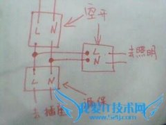 你要有2个空气开关,和1个漏电保护火线是L零线是N安装如图:这样分成2路,如果有一路出故障可分开处理,切记插座一定是装在漏电保护上,才能保证电器漏电时的人身安全!其...