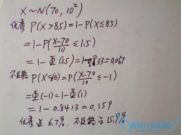 问题4:统计学 计算题 末班一次数学考试成绩X-N(70,10的平方),若规定低于60分为 不及格 高于85分为 优秀 问优秀和不及格分别占全班的比例[数学科目]