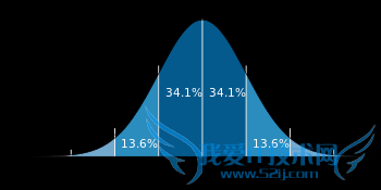 深蓝色区域是距平均值小於一个标准差之内的数值范围.在常态分布中,此范围所占比率为全部数值之68%,根据常态分布,两个标准差之内的比率合起来为95%;三个标准差之内的比率合起来为99%.