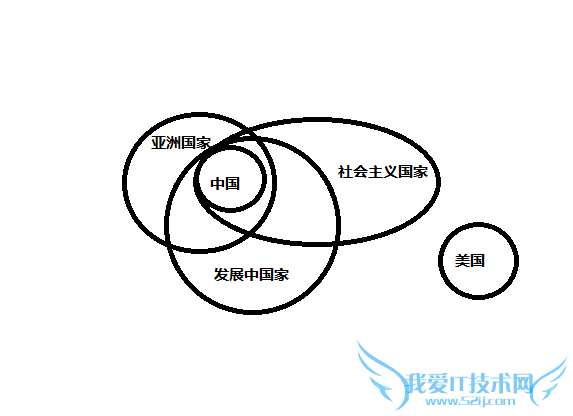 问题5:用欧拉图表示 中国,亚洲国家,发展中国家,社会主义国家,美国 这些概念间的外延关系!