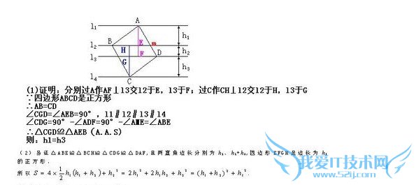问题3:如图,正方形ABCD的四个顶点分别在四条平行线L1、L2、L3、L4上,这四条直线中相邻两条之间的距离依次为h1、h2、h3(1)求证:h1=h3(2)设正方形ABCD的面积为S,求证:S=(h1+h2)2+h12[数学科目]