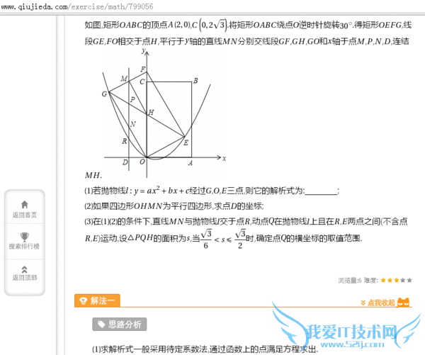 问题2:2014珠海中考22题如图,矩形OABC的顶点A(2,0),C(0,2根号3).将矩形OABC绕点O逆时针旋转30°.得矩形OEFG,线段GE,FO相交于点H,平行于y轴的直线MN分别交线段GF,GH,GO和x轴于点M,P,N,D,连结MH.(1)若抛物线l[数学科目]