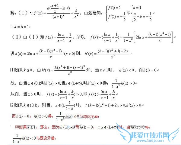 欢迎您访问52IJ教育培训网,今天小编为你分享的数学方面的学习知识是通过网络精心收集整理的:“2011高考理科数学_2011新课标高考理数21题 我的解法已知函数f(x)=alnx(x+1) + b...”,注意:所整理内容不代表本站观点,如你有补充或疑问请在正文下方的评论处发表。下面是详细内容。