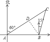 问题2:如图,一艘船在A处测得北偏东60°的方向上有一个小岛C,当它以每小时40海里的速度向正东方向航行了30分钟到达B处后,测得小岛C在其北偏东15°的方向上,求此时船与小岛之间的距离BC.(2[数学科目]