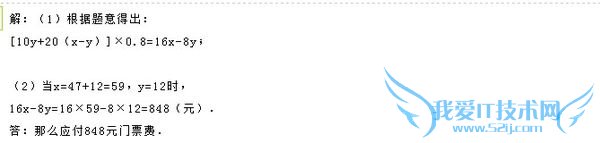 问题3:某公园的门票价格是:成人20元,学生10元,满40人可以购买团体票(打八折),设一个旅游团共有x(x>40)人,其中学生y人用代数式表示该团应付的门票费[数学科目]