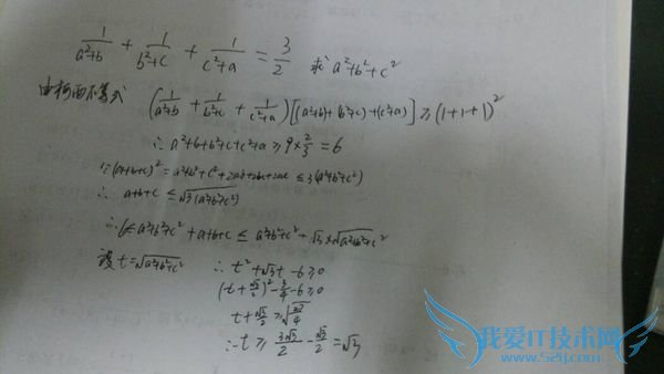 问题1:已知a,b,c>0,1/(a∧2+b)+1/(b∧2+c)+1/(c∧2+a)=3/2,求a∧2+b∧2+c∧2的最小值[数学科目]