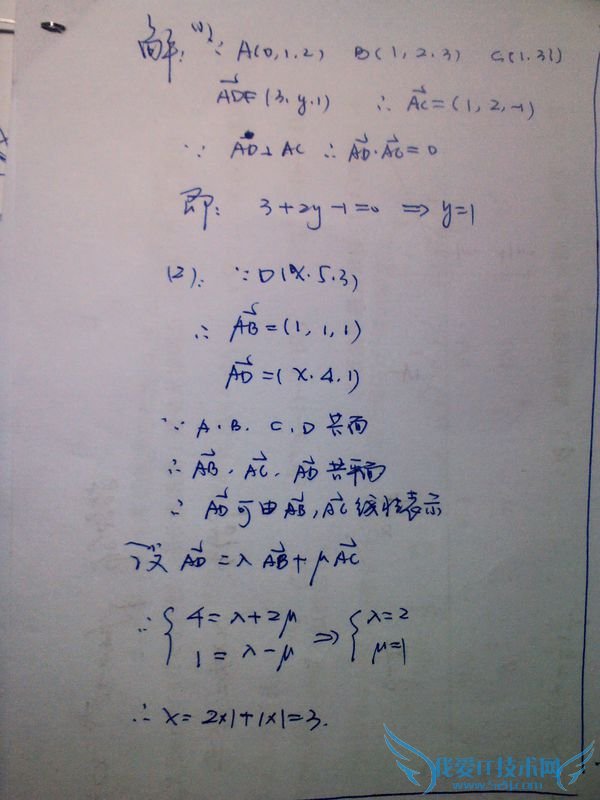 问题4:已知点A、B、C的坐标分别为(0,1,2),(1,2,3)(1,3,1)