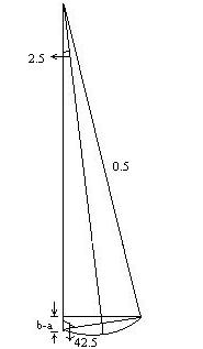 b-a = 2 x [0.5 x sin (2.5/180)π] x cos42.5/180)π =0.032 m