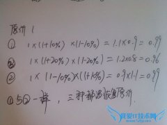 类别:数学 发布时间:16-04-19 点击:1520(1)方案一:先提价1%为:(1+10%)m=110%m,再降价10%后价钱为:110%m×(1-10%)=99%m;方案二:先降价10%为(1-10%)m=90%m,再提价10%后价钱为90%m×(1+10%)=...