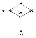以质点代替杠铃,画出受力图如图.设两臂之间夹角为2α,杠铃根据平衡条件得