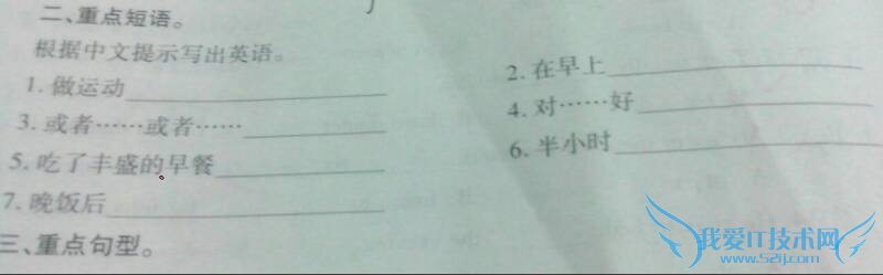 【答案】:1.do exercise 2.in the morning 3.either...or... 4.be kind to 5.have a big breakfast 6.half an hour 7.after supper