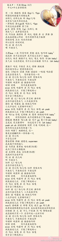 问题4:速求!B.A.P-Stop it 的中文意思?