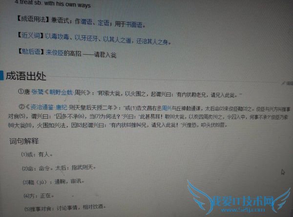 译文:大臣周兴与人谋反.武则天命来俊臣招来周兴.两人共饮论事.来俊臣问周兴:"囚犯多不认罪,有何办法?"兴说:"好办.取一口大缸来,四周用火烧,将罪犯投入,何罪不承认."来俊臣马上叫抬来一口大缸,四周点火如法刨制.站起来对周兴说:"老兄,有人告你谋反,请你进去吧."兴立刻低头认罪.这一典故.比喻以其人的办法,降伏这个人.